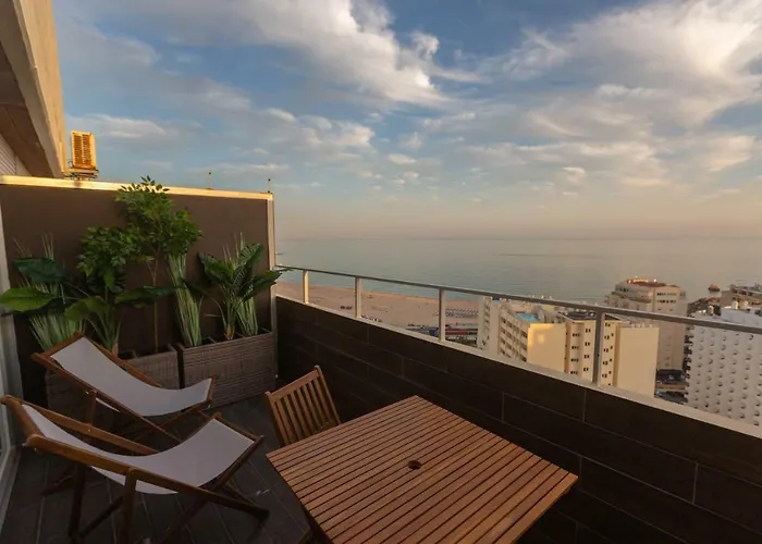 SOLARIS PANORAMIC studio vue mer, un apartamento de 40 m^2, que ofrece parque acuático y terraza, se encuentra en el barrio Praia da Rocha, a tan solo 1 km del Centro comercial Continente. Los huéspedes pueden relajarse y contemplar las vistas al mar desde la terraza de este apartamento.